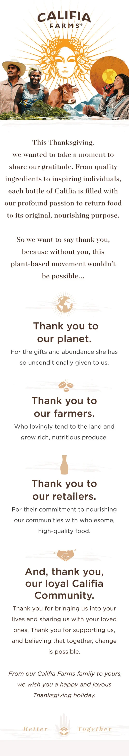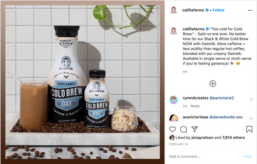 Califia Farms: Holiday 2020 packaging poem “Cheer Up Your Cup” for coffee creamers that ran nation-wide and “You’ve met your better half” tagline for creamers that’s still running across all creamer packaging.